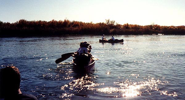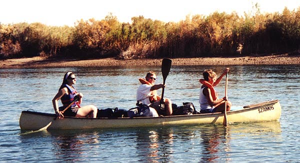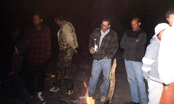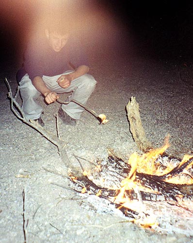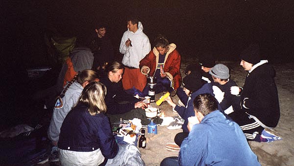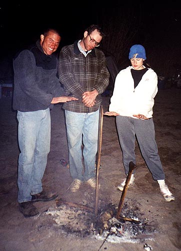 | Geza mourns the paddle we burned for firewood as Erik and Kinga look on. |