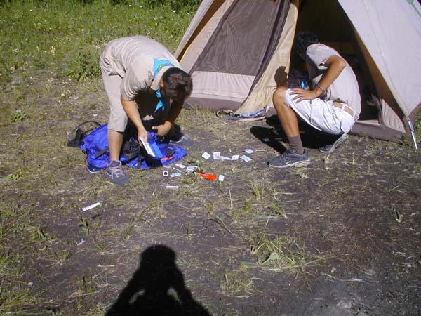 | Thank God it was Christian's first aid kit that went flying everywhere and not his other bag . . . |