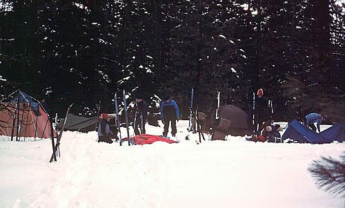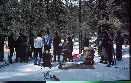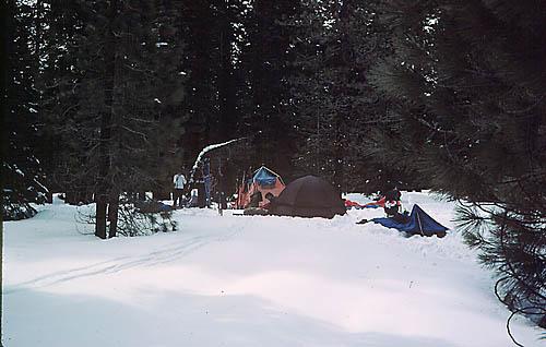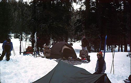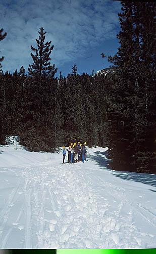 | Big sky, lots of snow, woody trees, must be a forest. |