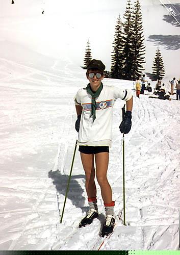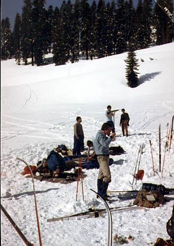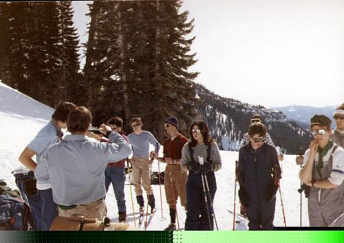 The winners of our Winter Olympics. No lack of snow on this ski trip. The weather permits skiing in short-shorts. The gun is for the biathlon. The plan is laid out here.