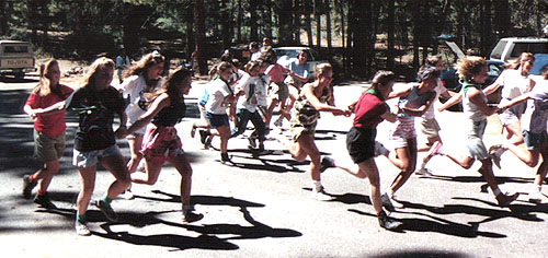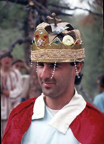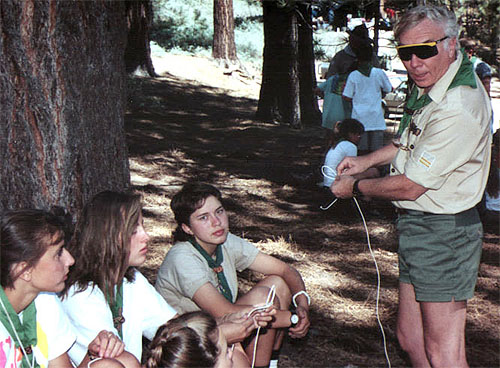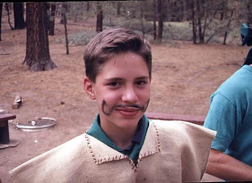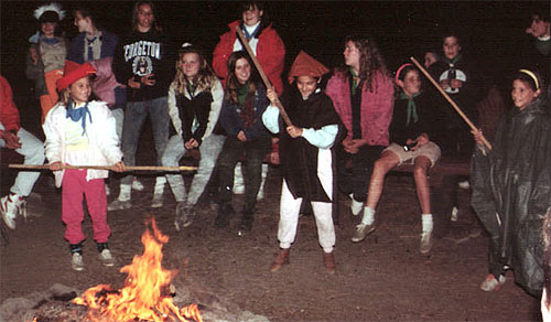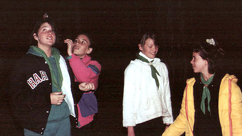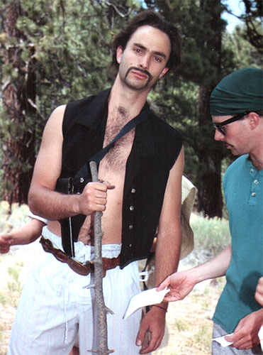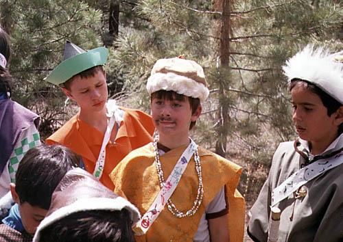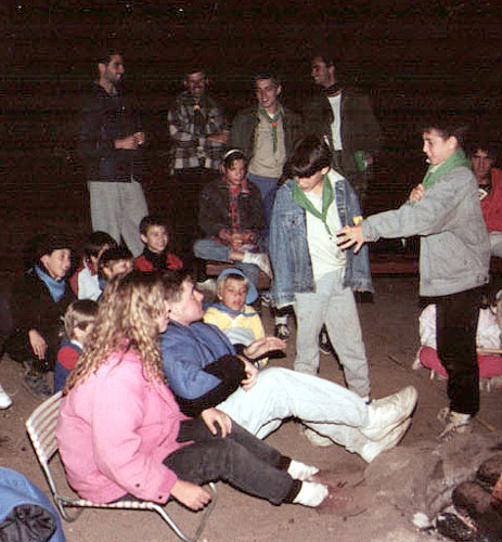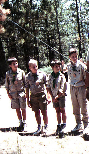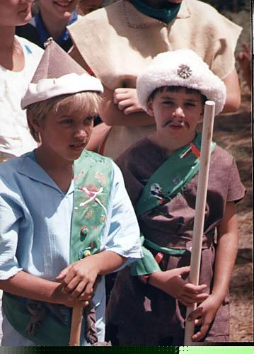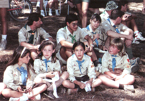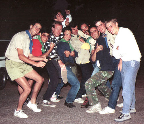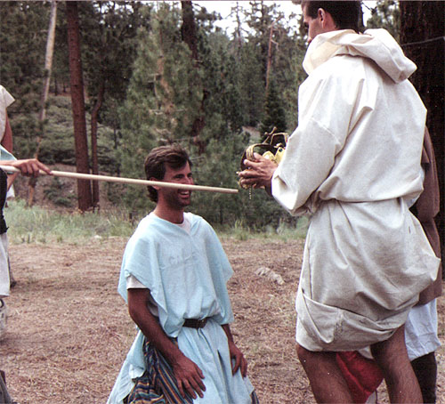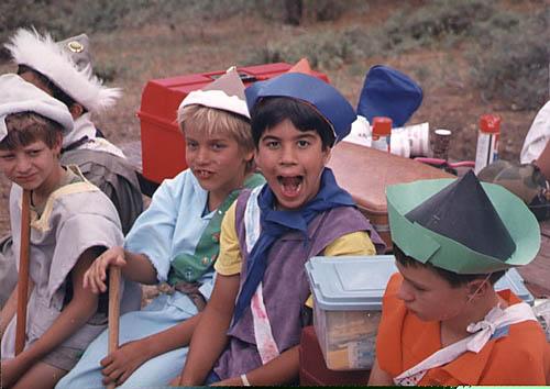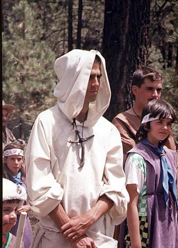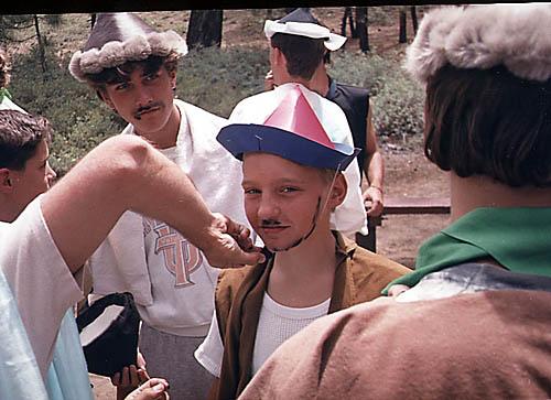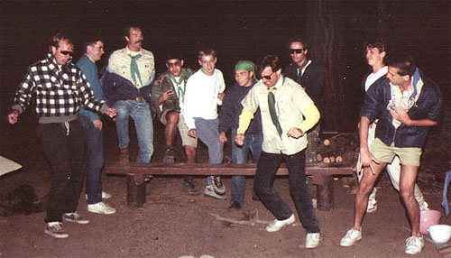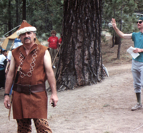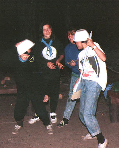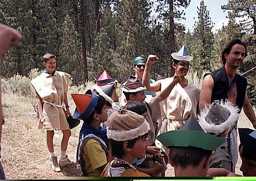| This was Scoutmaster Csaba's gearing up for Idaho '92. Meanwhile, in the background, Otto was taking bets on whether the pagans or Christians would win. |