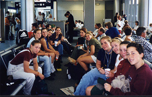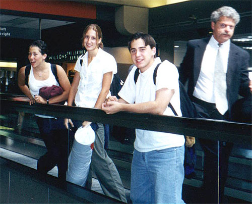 | Andrea, Imola and Zoltán at Pittsburgh airport. We don't know who that guy is. |