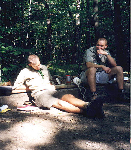 | Taking a break in the front of the Sándor Sik Scoutpark. |