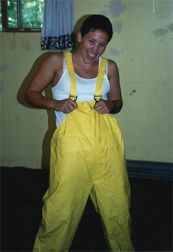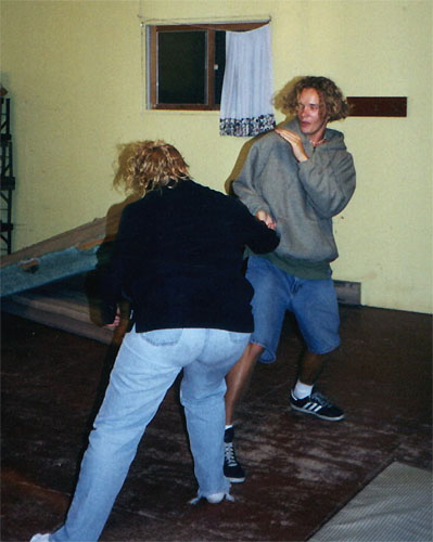 | Erika, Pali and Patricia play a "radio signal" game. |