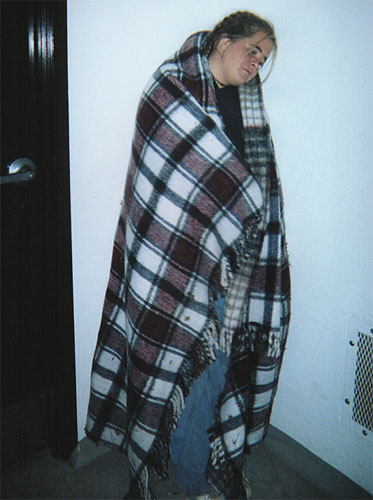 | Krisztina went to the outhouse for the warmth and comfort it provided. |