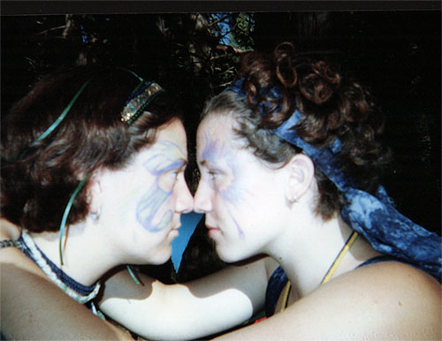 | Tzanna has attacked Kathy and Andrea and painted on their faces. |