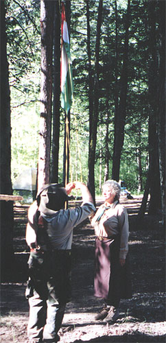 | Arpi ba and Judit neni raise the flag. |