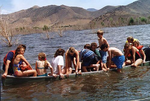 Les paddles in the back of the canoe while Peter enjoys the lake in the front. Tom and Zoli chill out in the canoe. Arpi Ba (Mr. Arpi) teaches Alex how to steer a canoe. Here is the scout record for getting the most scouts in a canoe without sinking it, the record is 26.