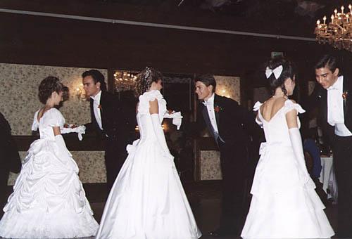 Many scouts dance in this formal dance presentation. Scouts and their families pose for the camera. Scouts come together to dance in this formal dance presentation.