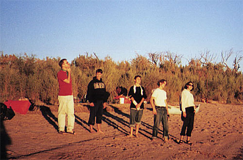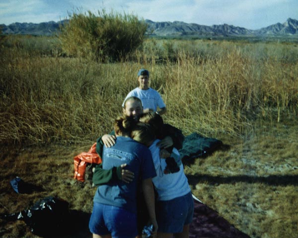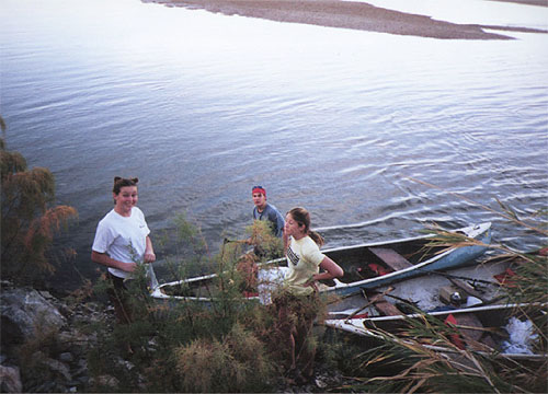 | Erika, Serika and Zoltan help to tie the boats up for the night. |