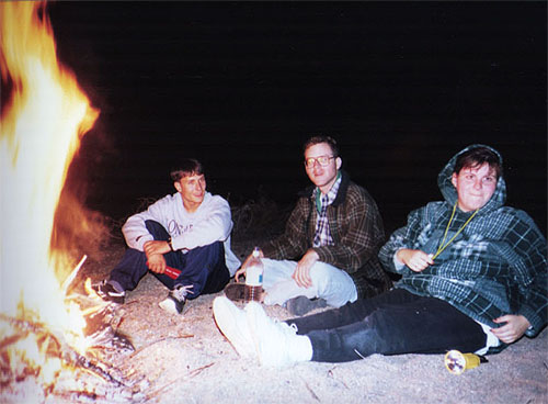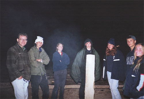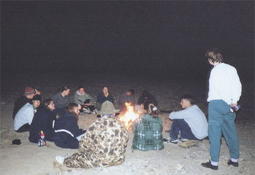 | Everyone hangs out after the campfire. |