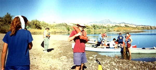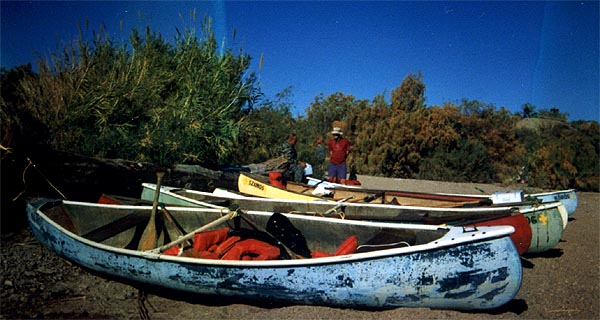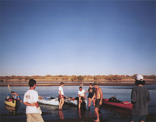 | Everyone leaves the canoes. |