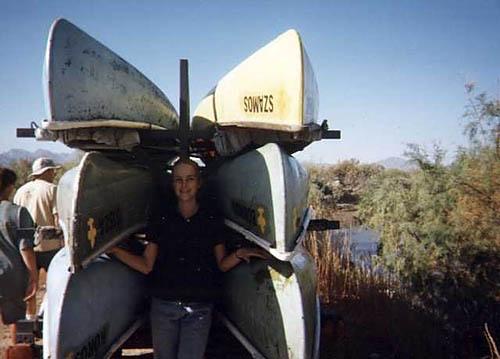 | Tom ties the canoes on top of the van (they did not fall off). |