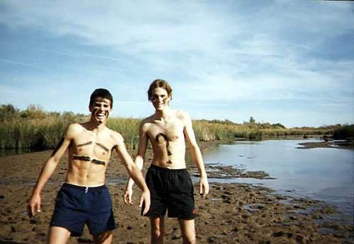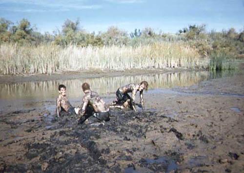 | The warriors pose after mud wrestling. |
