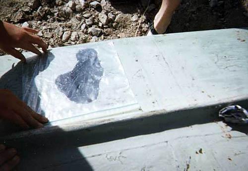 | The hole in this canoe was repaired with a zip-lock bag. |