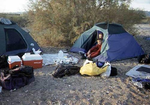 | Dave surveys the tent complex. |
