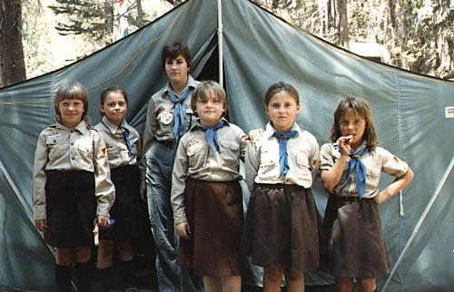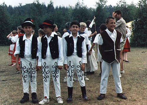 | A couple guys from troop 8 show off their traditional Hungarian clothes. |