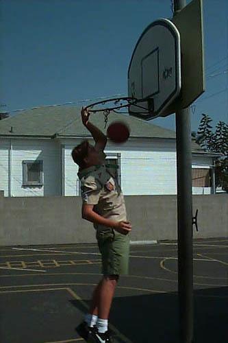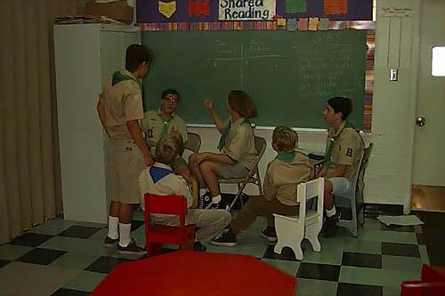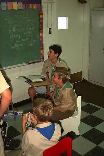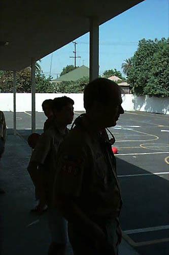 | Scouts silhouetted in the foreground looking out at the playground. |