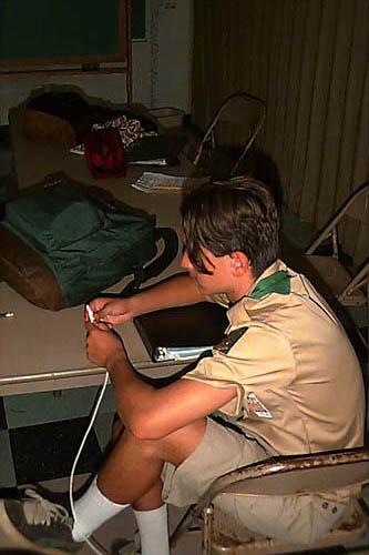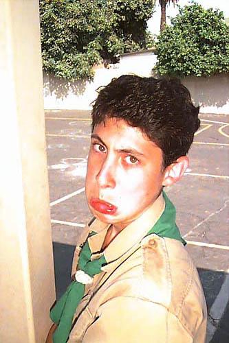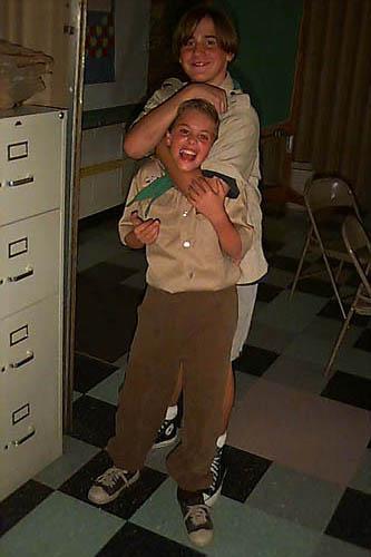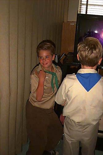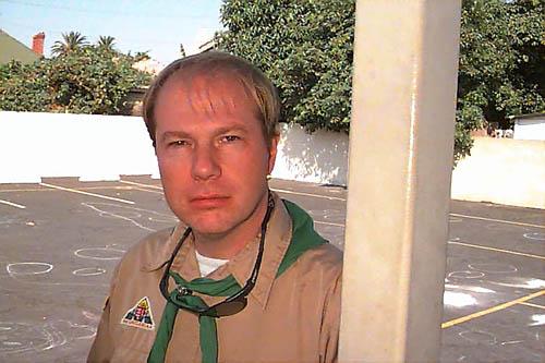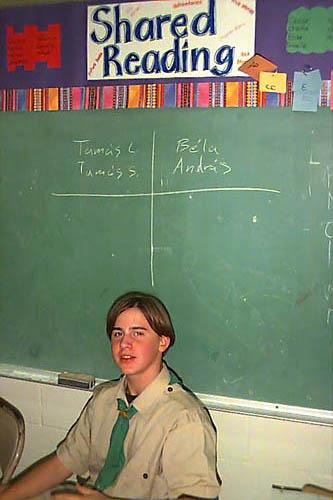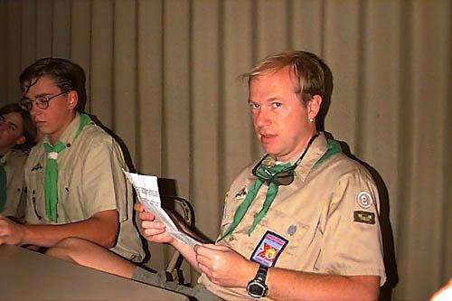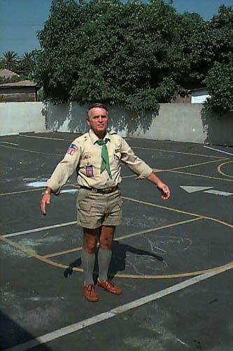 | Scoutmaster Csaba a.k.a Chuck shows off his hand signs. |