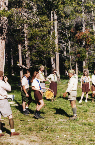| Anikó and Csaba give an award to Scoutmaster Csaba, who was the guy in camp. |