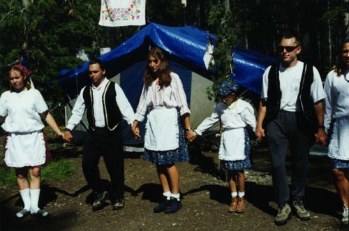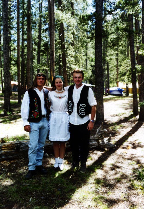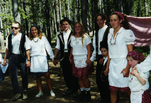 | Csaba, Dia, and Sanyi in Hungarian folk attire. |