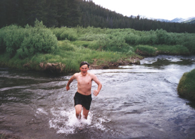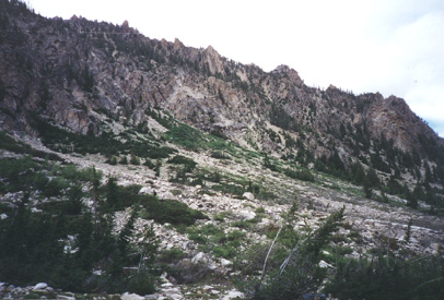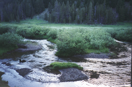 | A bend in the Salmon river. The camp is located at the river's headwaters. |